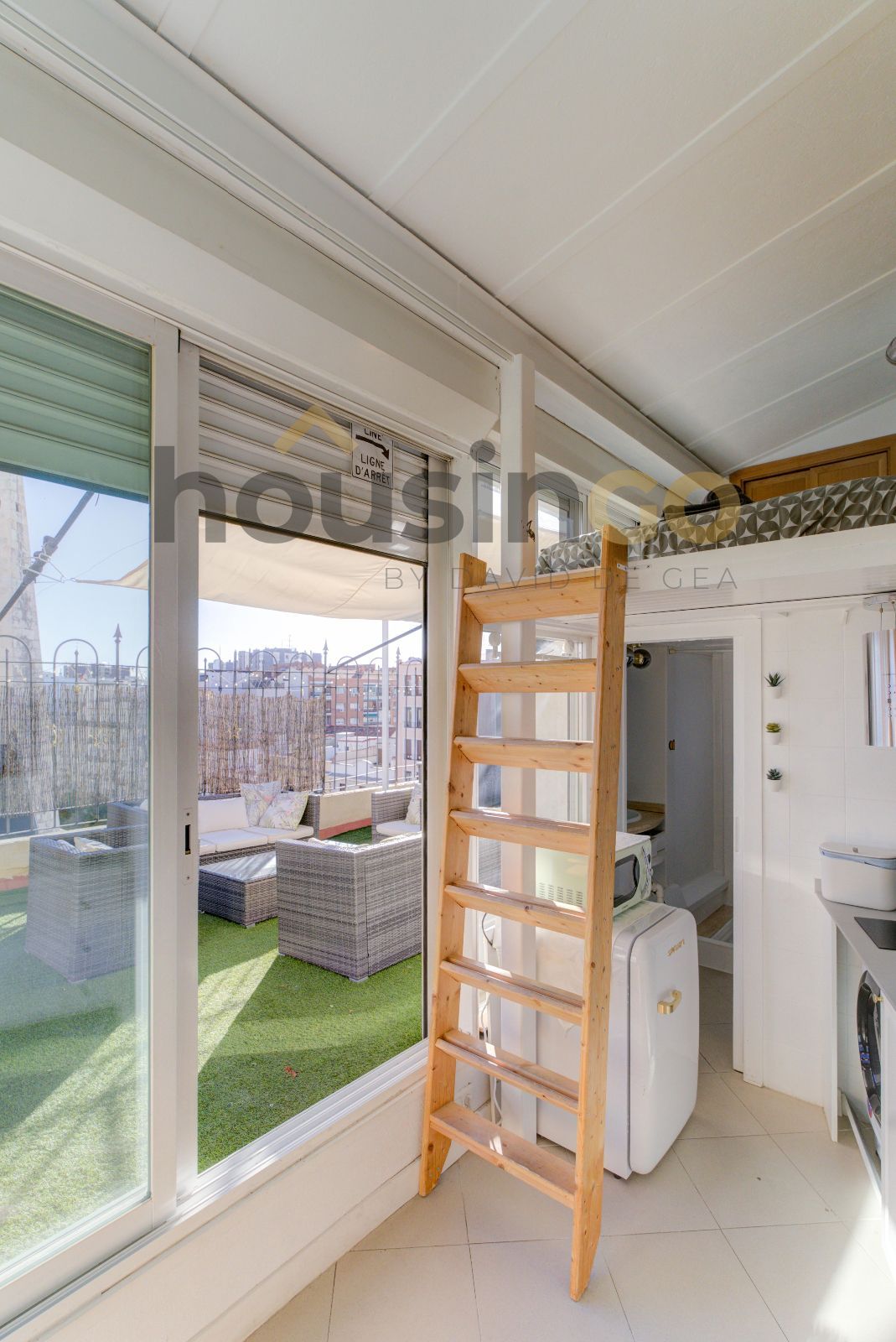 The property stands out for its spectacular private terrace that surrounds the penthouse and significantly expands the living space, creating perfect areas for relaxing, working, or entertaining guests. The interior is organized through an entrance hall that leads to a bright open-plan area, thanks to large floor-to-ceiling windows. The integrated kitchen, recently renovated, is equipped with modern appliances. The penthouse also includes a refurbished bathroom and a sleeping area with built-in wardrobes.