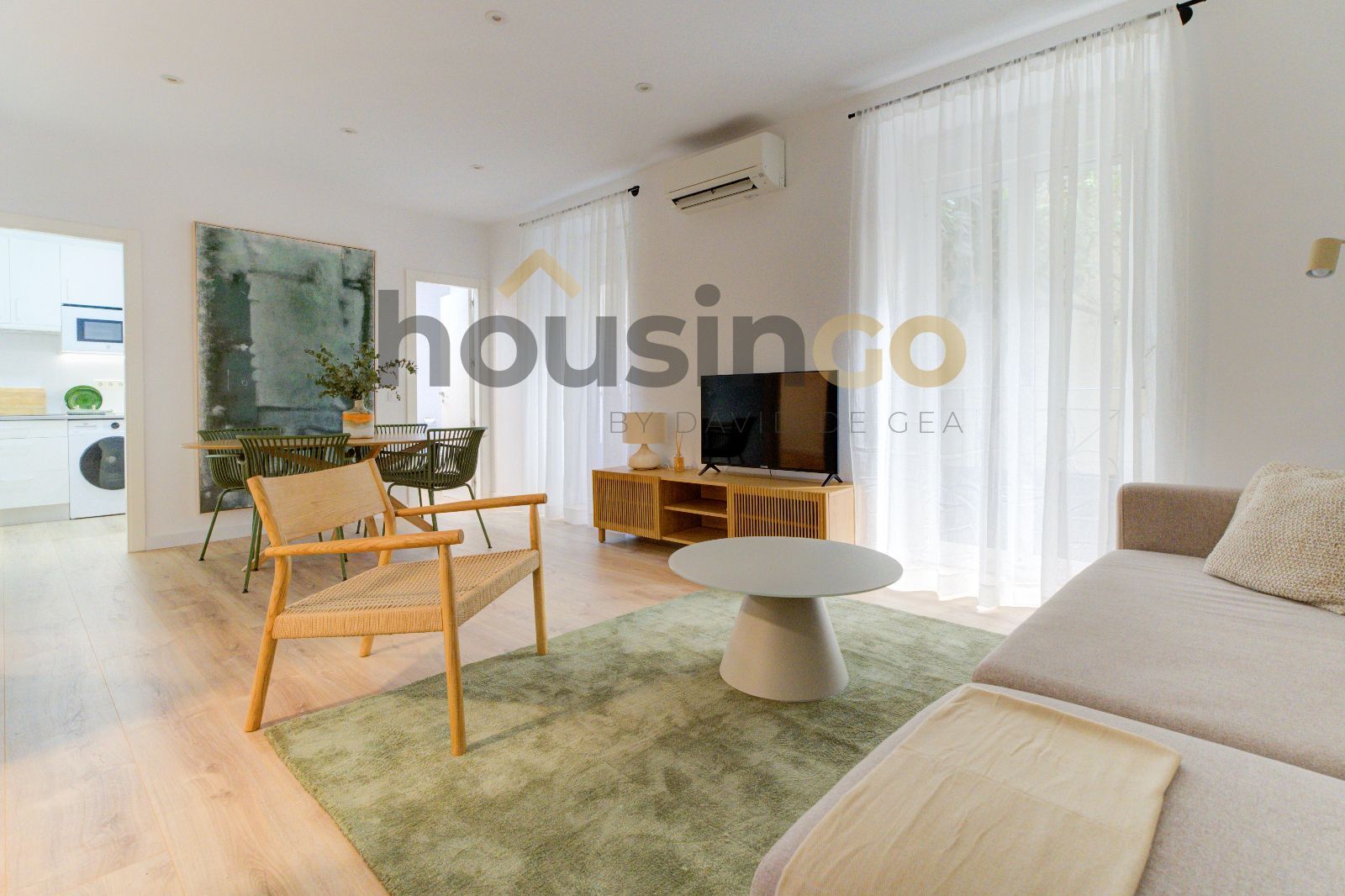 La vivienda, totalmente a estrenar, amueblada, y decorada con exquisito gusto, se sitúa en la primera planta del edificio, con orientación sur y un nivel de luz natural medio-alto gracias a su amplitud en el patio de manzana con vegetación. Ha sido objeto de una reforma integral, por lo que todos los elementos son nuevos y cuentan con su correspondiente garantía.