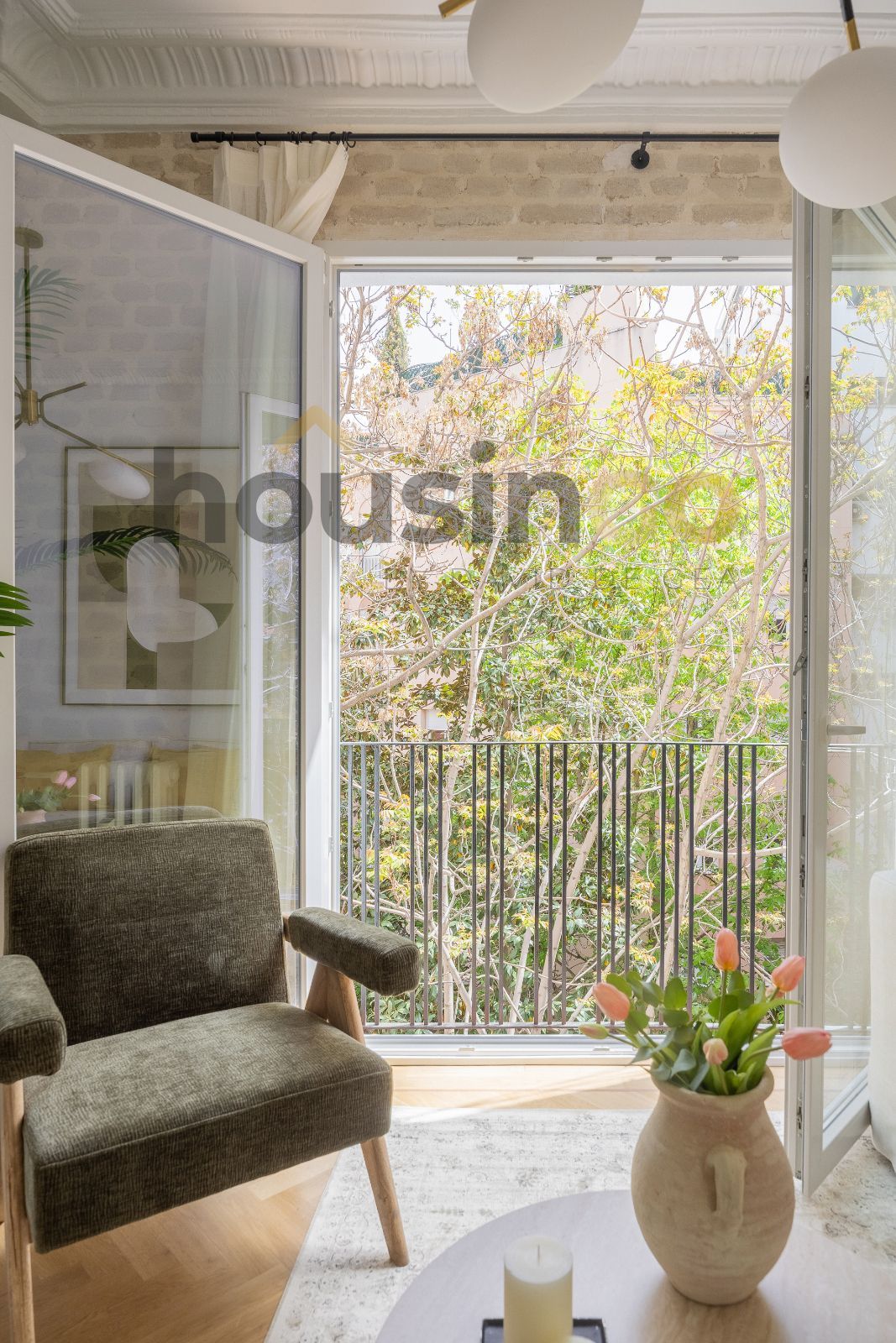 La vivienda, de 103 m2, ha sido recientemente reformada y se entrega a estrenar y completamente decorada y amueblada. La zona de día se distribuye en un amplio salón-comedor con acceso a dos balcones al exterior de al calle, lo que aporta luminosidad y ventilación natural, junto a una cocina abierta y diáfana.